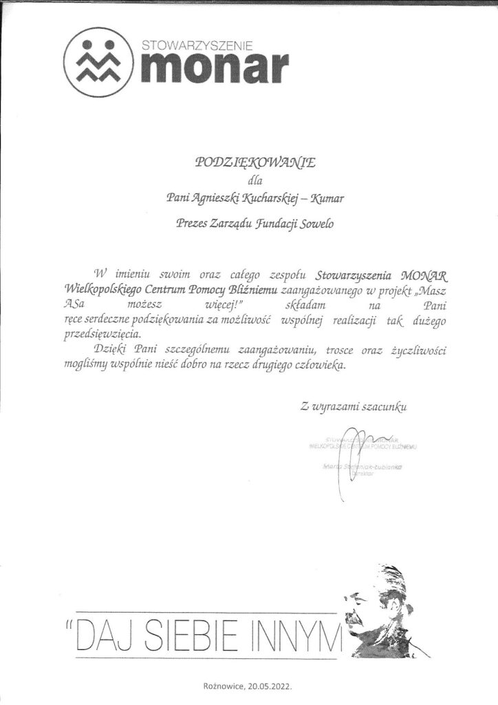 Sowelo Foundation was established in June 2017 as an informal group of specialists working in the field of social projects in the area of social and professional activation of people with disabilities and was registered as The Sowelo Foundation in September 2018. The foundation is active in the areas of personal assistance and in informal adult education: it organizes trainings aimed at promotion of independence of people with disabilities as well as other educational workshops. The core values of Sowelo Foundation are: Independence, Equality and Full Participation in Society for people with disabilities. Since 2018 the Foundation has also been a social enterprise running an online shop offering various products imported from India and employing workers with disabilities, enabling them to fulfill their aspirations. There are 10 persons, including the disabled, under an employment contract in the Foundation and over 70 persons under a mandate contract.